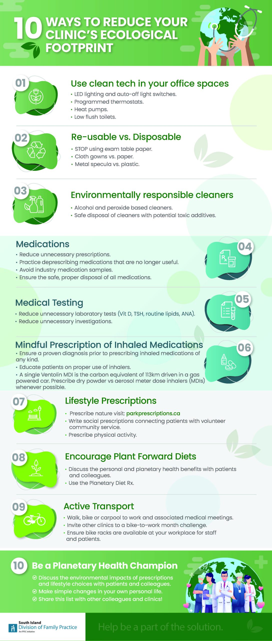 April 22 is Earth Day, a day to raise awareness among citizens and organizations across the country about environmental issues. SIDFP is committed to planetary health and finding ways to lessen members’ impact on the environment. Check out the poster below to learn 10 easy ways to reduce your clinic’s ecological footprint.